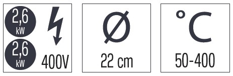 - 2 thermostats réglables de 50°C à 400°C