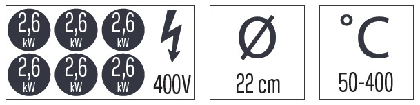- Puissance : 6 x 2 600 W / 400 V