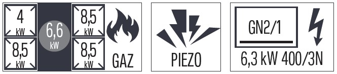 - Puissance : 6 600 w + 3 x 8 500 w + 4 000 w gaz + 6 300 w / 400 v