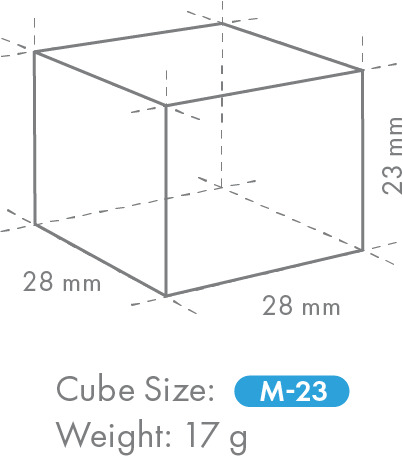 Taille des glaçons : 28 x 28 x 23 mm, 17 g (cube m)