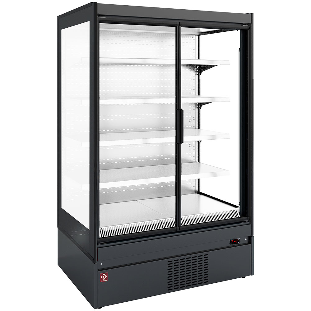 Meuble mural réfrigéré, joues vitrée, libre-service, portes battantes - BLACK/WHITE DIAMOND