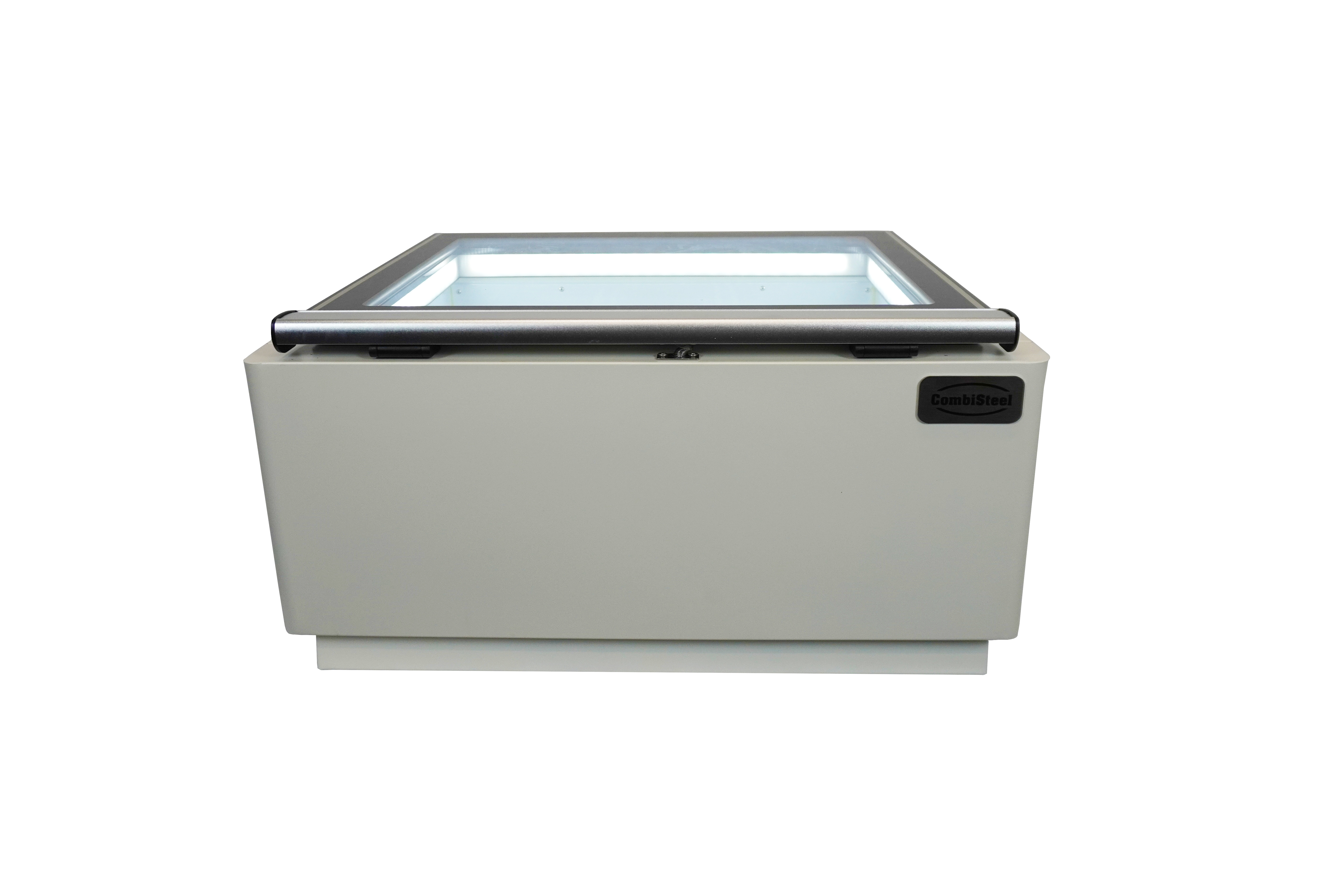 Modèle de table vitrine à creme glacée blanc s'ouvre du côté fonctionnement COMBISTEEL