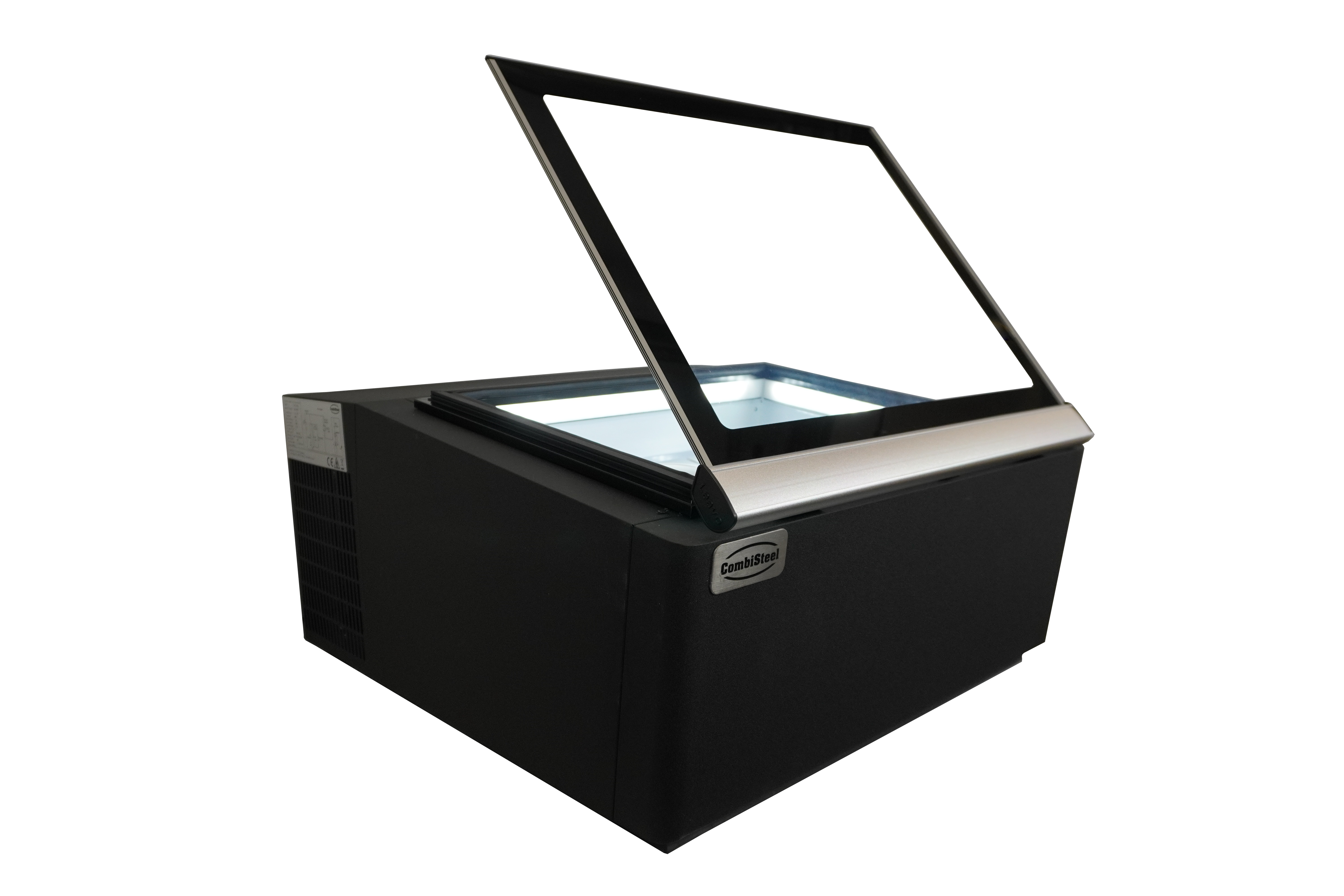 Modèle de table vitrine à creme glacée noir s'ouvre du côté fonctionnement COMBISTEEL