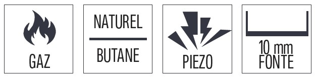 > Pré-équipée pour fonctionner en gaz naturel, les injecteurs gaz butane sont inclus.