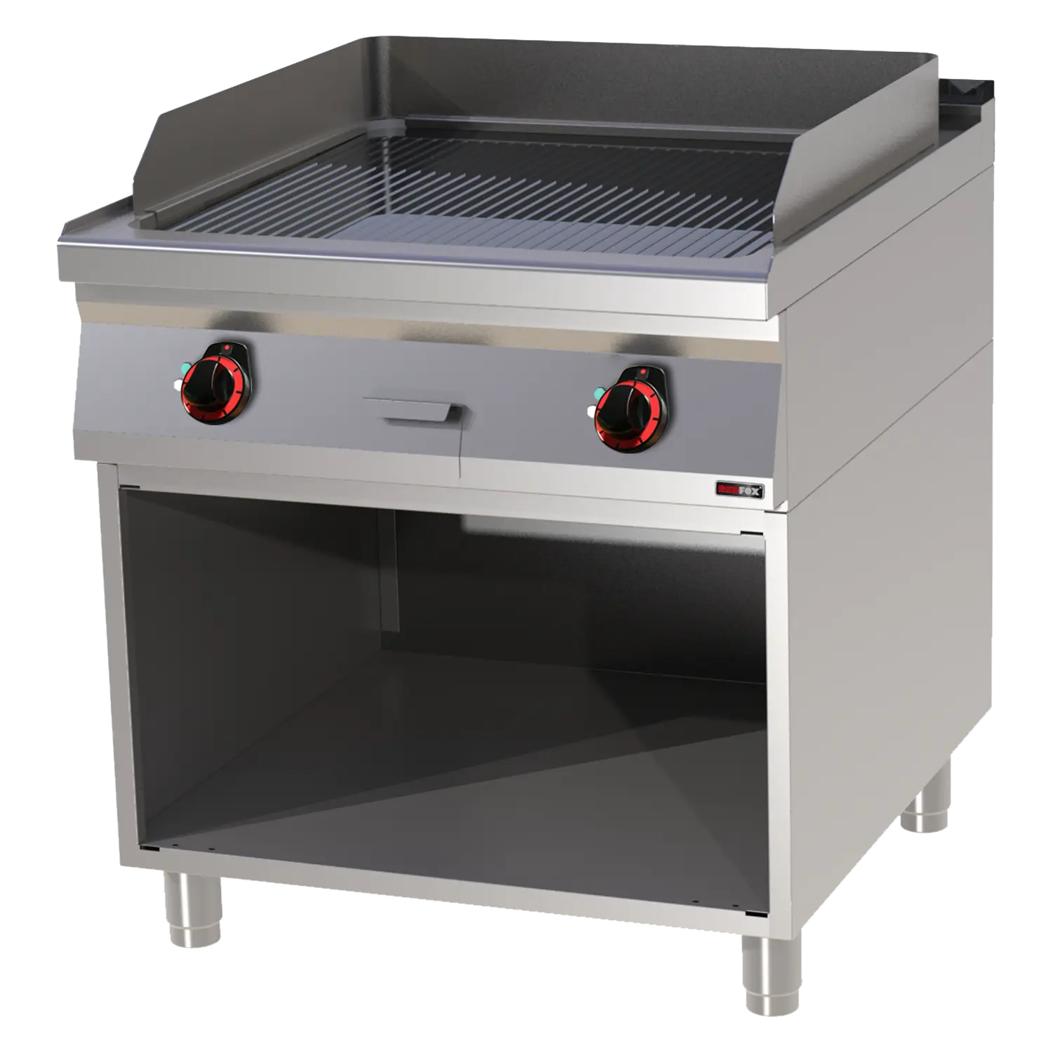 Plaque de cuisson 71x65 électrique chromée nervurée avec soubassement 400 V - FTRC 90/80 E REDFOX