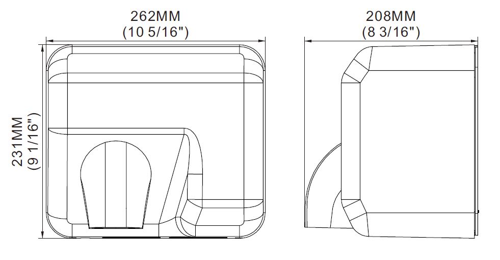 - Dimensions extérieures (en mm)262 x 208 x 231